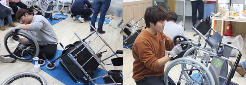 ▲ ‘휠마스터’ 교육을 받고 있는 ‘커리어 점프업 클래스’ 교육생들 – 이미지 출처 : 한국장애인재단