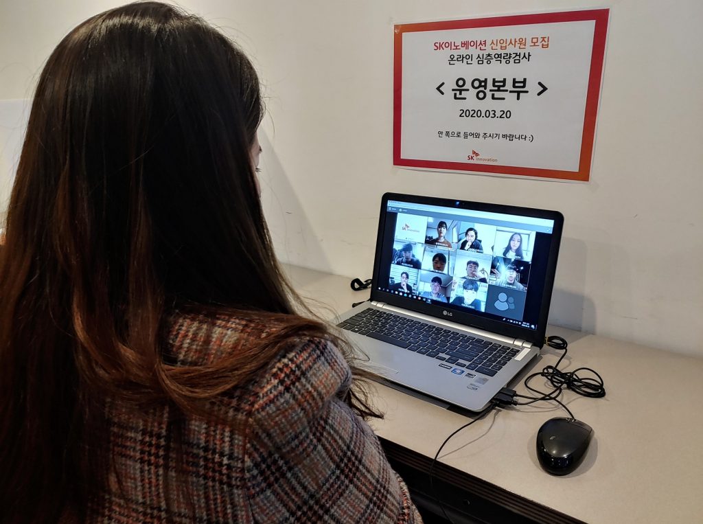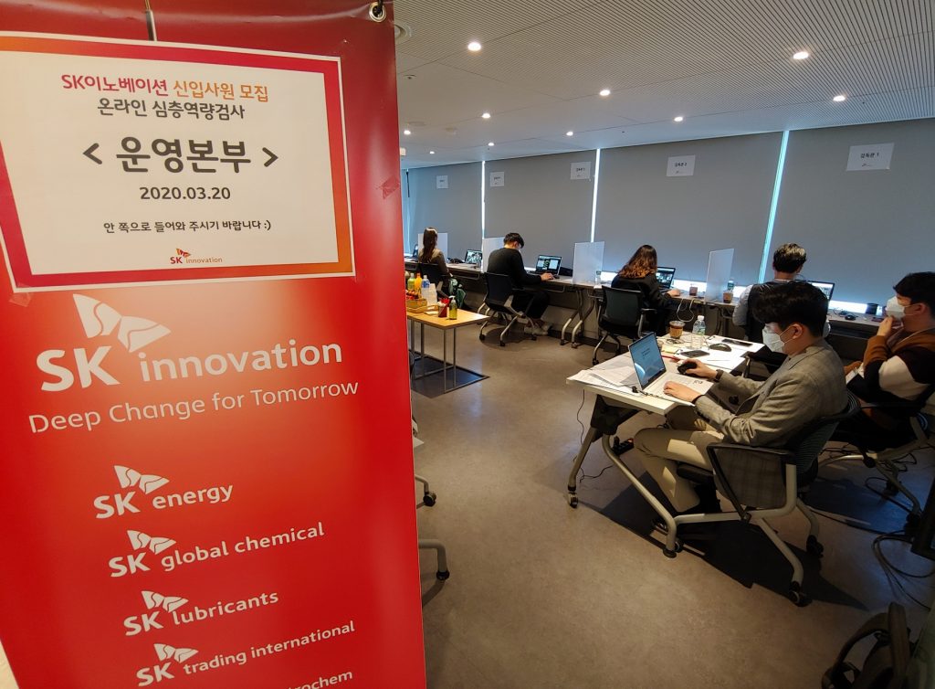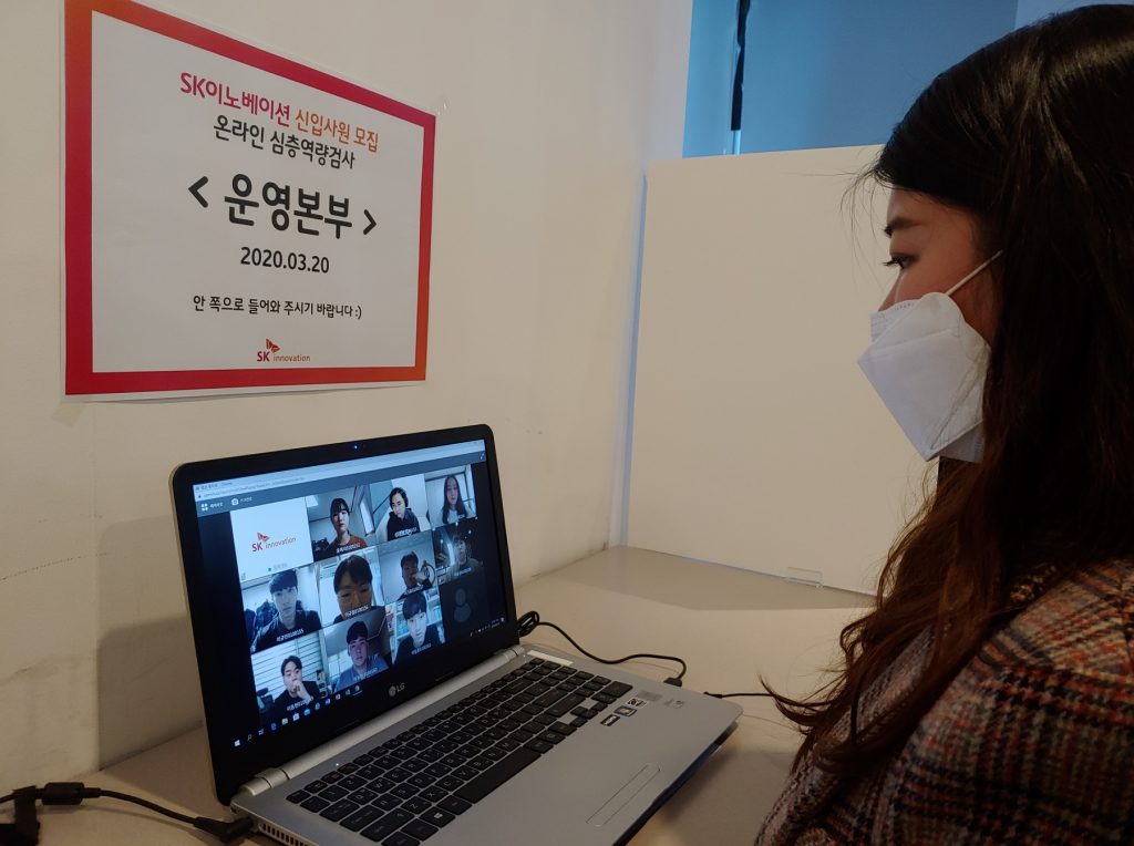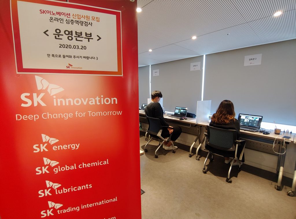 ▲ SK이노베이션은 코로나19로 얼어붙은 채용 환경에서 ‘사회적 거리두기’를 실천하며 채용 일정을 진행하는 ‘언택트(Untact) 채용’에 앞장서고 있다. 이달 초부터 진행 중인 모든 채용에 화상 면접을 도입한 데 이어, 신입사원 채용 과정의 핵심적인 부분인 필기전형도 화상으로 진행하는 ‘온라인 심층역량검사’를 실시하고 있다.