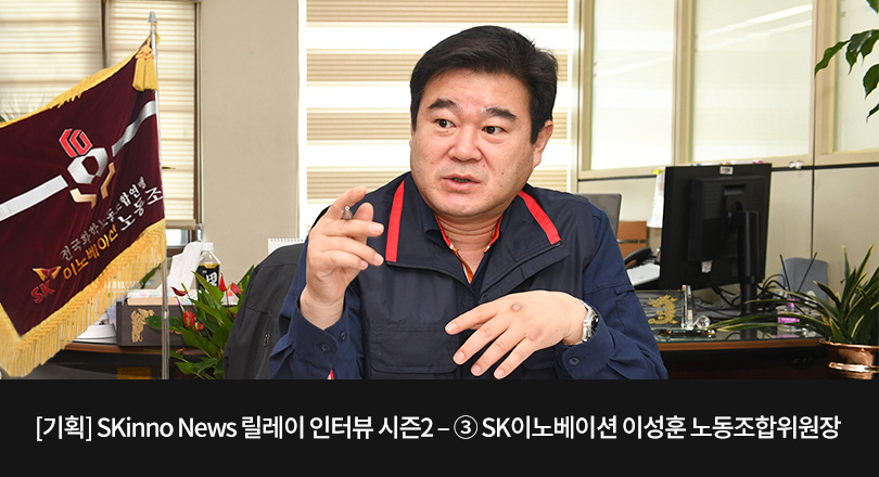 SK이노베이션이 만든 뉴스전문 보도채널 SKinnonews.com이 SK이노베이션 계열 릴레이 인터뷰2를 진행한다. 세 번째로 지난해 말 노조위원장으로 선출되어 4개월째를 맞은 SK이노베이션 이성훈 노동조합위원장(이하 노조위원장)을 만나 이야기를 들어봤다. 그는 노조가 앞장서 구성원의 일터와 행복을 더 크게 키워가겠다며 “전례가 없는 지금 상황에서 서로 의지하고 힘을 합쳐야 위기를 헤쳐나갈 수 있을 것”이라고 강조했다.