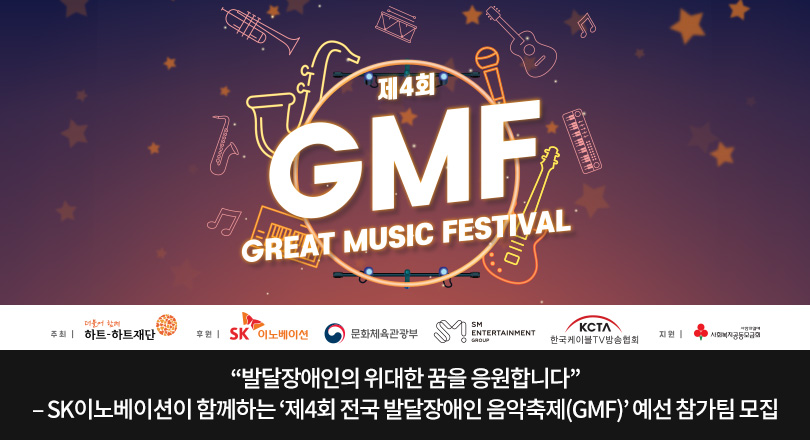 SK이노베이션은 발달장애인들이 음악적 재능을 마음껏 발휘하며 만들어내는 하모니를 통해 위대한 꿈을 이루어 갈 수 있도록 하트-하트재단*과 뜻을 모아 지난 2017년부터 매년 GMF를 개최하고 있다.