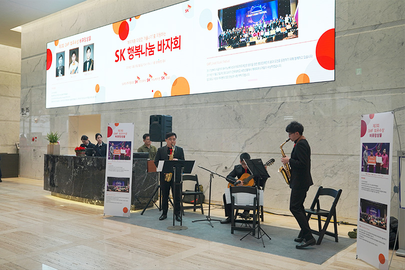 ▲ 지난해 12월, ‘2019 SK 행복나눔 바자회’에서 공연을 하고 있는 제3회 GMF 최우수상 수상팀 비쥬앙상블