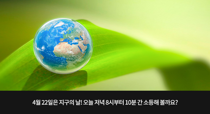 올해로 50주년을 맞은 ‘지구의 날(Earth Day)’은 지구환경오염 문제의 심각성을 알리기 위해 자연보호자들이 제정한 지구 환경보호의 날이다. 지구 보호를 위해 오늘 저녁에는 10분간 불을 꺼 보면 어떨까?