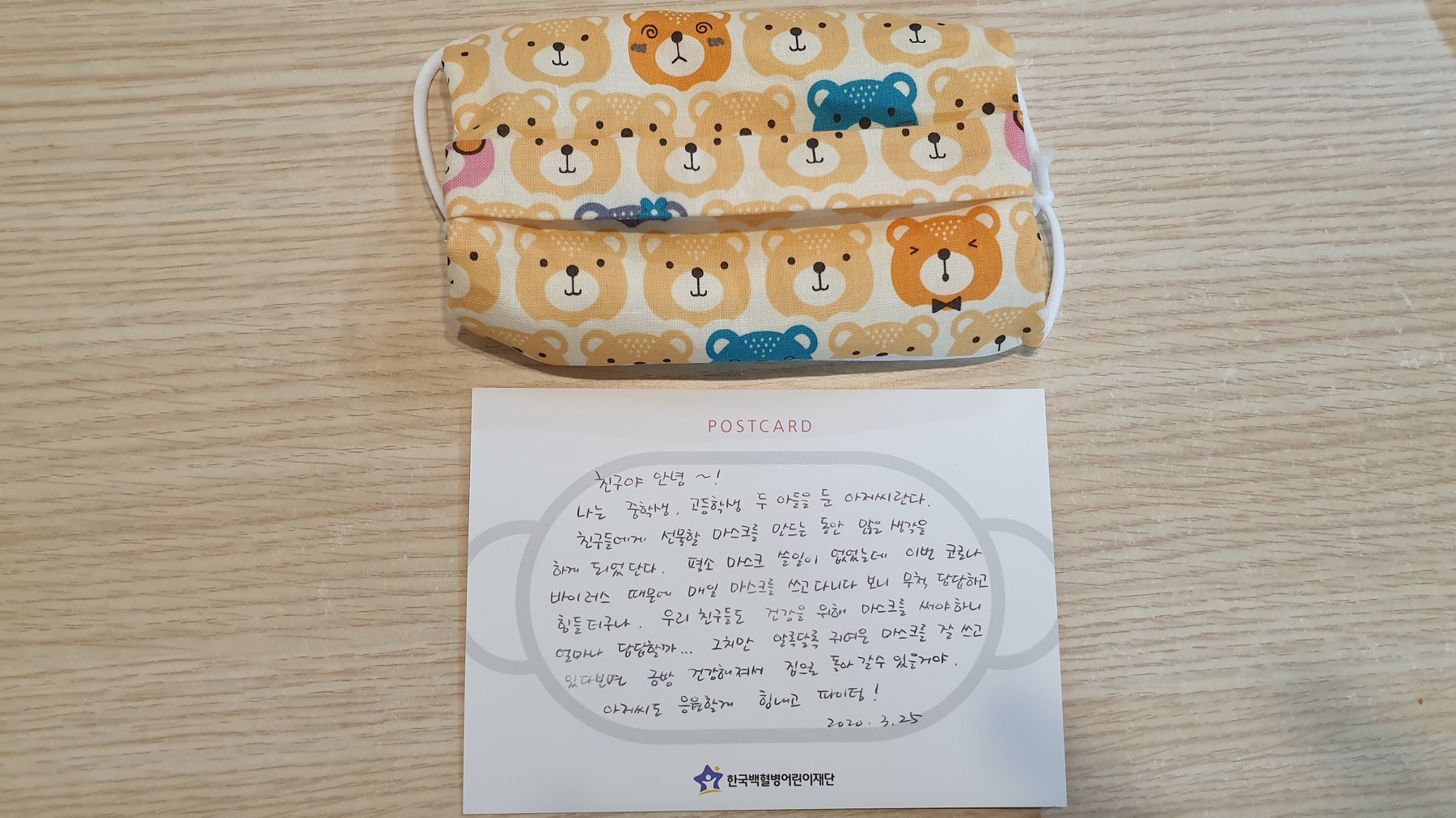 [사진] “더 찬란하게 빛날 너의 앞날을 응원해!” 2020. 04. 24 SK이노베이션 [사진] “더 찬란하게 빛날 너의 앞날을 응원해!” AI 요약 AI 보이스 ▲ SK이노베이션 구성원 및 그 가족들이 소아암 어린이들에게 작게나마 도움이 되기를 바라며, 마스크를 직접 만들고 응원 편지를 적었다. 미디어 키트 이전글 다음글 연관 콘텐츠 ENERGY INSIGHT [CES 2023 기고] 기후변화의 아이돌이 설 수 있는 무대 2023.01.10 INNO FOCUS [CES 2023] ‘동행’에서 ‘행동’으로 – 현장에서 보는 SK의 탄소 감축 위한 ‘Together in Action’ 2023.01.07 사회적가치 뉴스 PEOPLE & CULTURE “더 찬란하게 빛날 너의 앞날을 응원해!” 2020.04.24 사회적가치 뉴스 PEOPLE & CULTURE 최이현 모어댄 대표, 폐차 가죽으로 희망 재단하다 2018.01.18