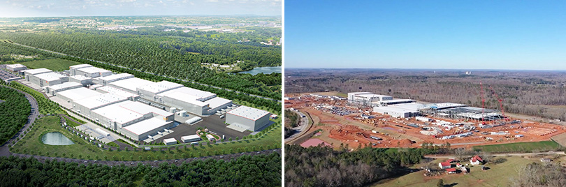 ▲ 미국 내 SK이노베이션의 배터리 1공장의 조감도(좌)와 건설되고 있는 모습(우)