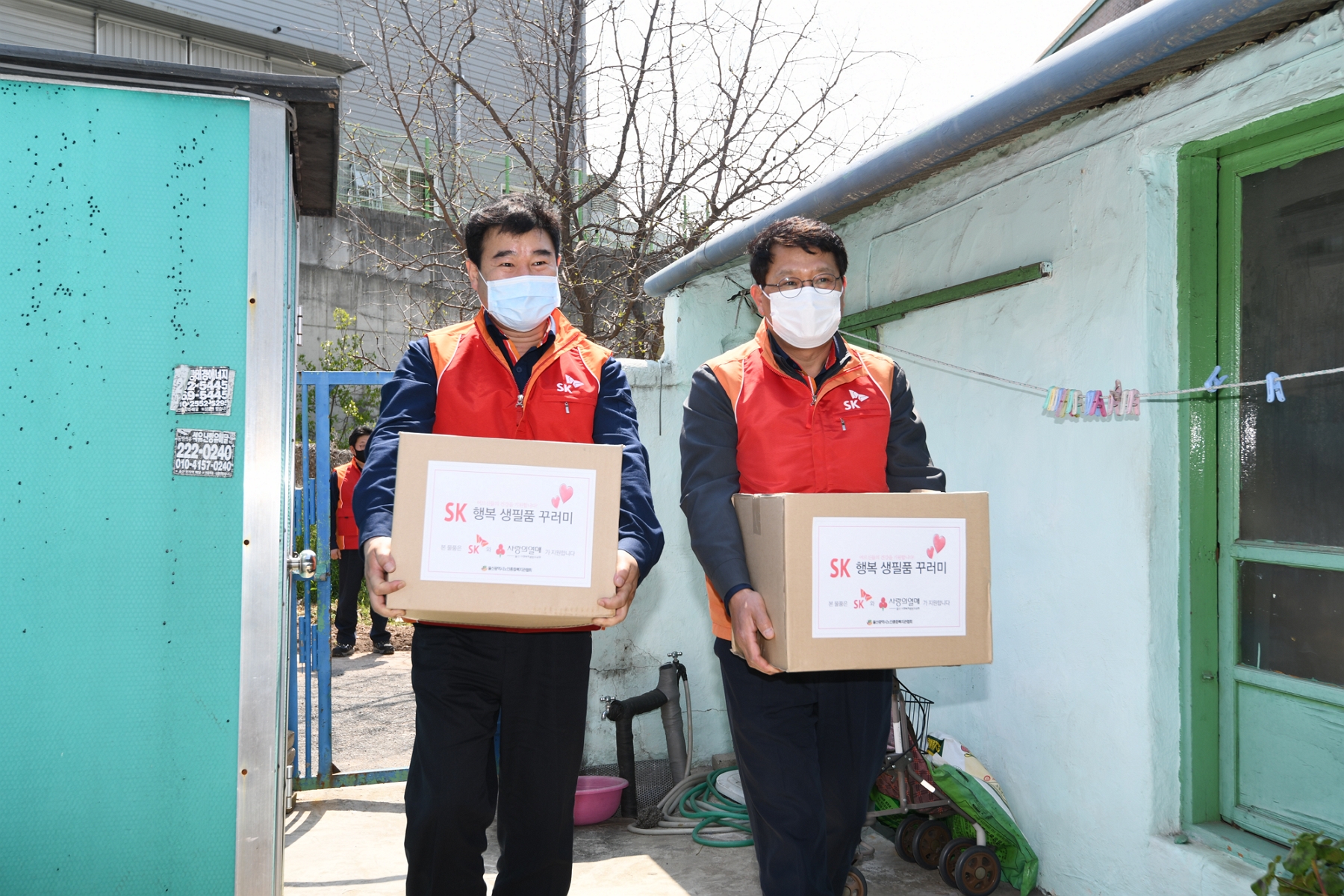 ▲ 울산CLX는 4월 28일, 울산광역시 남구에 위치한 선암호수노인복지관에서 홀몸 어르신 결식 방지를 위한 ‘SK 행복 생필품 꾸러미 전달식’을 열었다.