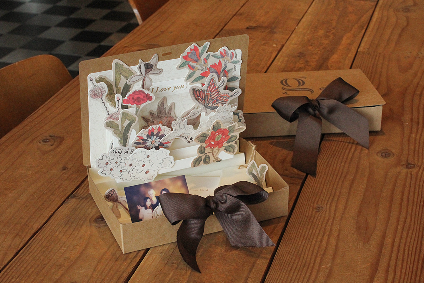 박스 안에는 우리의 옛 민화에서 발견한 은은한 아름다움을 주는 열아홉 송이 우리 꽃으로 구성되어 있다. 첫눈에 반하는 화려함이 아닌 두고 볼수록 아름다운 우리 민화에 나오는 전통 꽃을 현대적으로 재해석하여 세련됨과 동양적 감성을 동시에 느낄 수 있다.