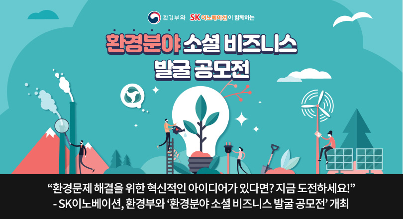 SK이노베이션이 환경부, 한국사회적기업진흥원, (사)신나는조합과 손잡고 환경분야 소셜벤처 및 사회적경제 기업 발굴을 위한 ‘환경분야 소셜 비즈니스 발굴 공모전’을 개최한다.