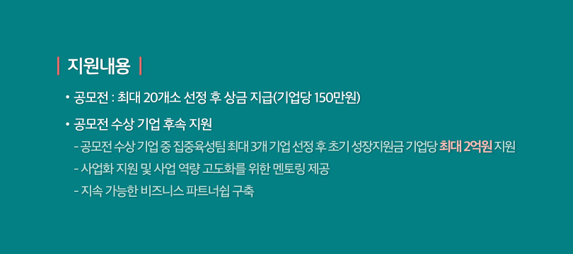 이번 공모전은 환경분야 사회적가치를 창출할 수 있는 아이디어와 혁신적 기술을 보유한 성장 단계의 소셜벤처·사회적경제기업이면 지원 가능하다.