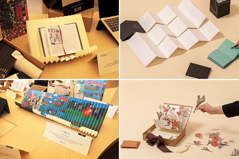 ▲ (좌측 상단부터 시계방향으로) 사회적기업 ‘그레이프랩’의 주력 상품인 노트북 스탠드 ‘지플로우(g.flow)’, 만년 플래너인 ‘지플래너(g.planner)’, 향기 가득한 ‘플라워박스 DIY 키트’, 발달장애인 작가의 작품을 활용한 ‘지플로우 아트에디션’