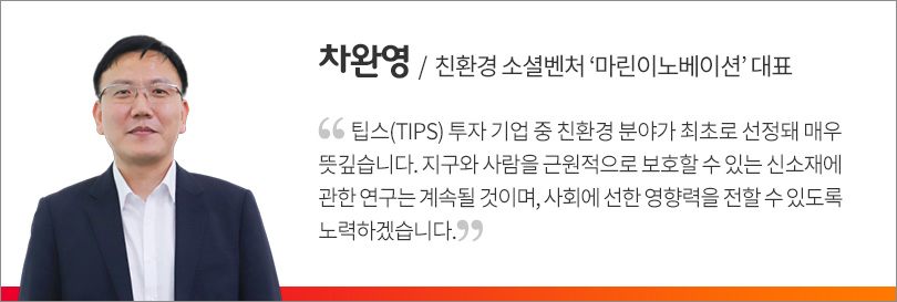 마린이노베이션이 이번엔 ‘키토산(Chitosan)*을 이용한 친환경 코팅 종이컵 개발’로 민간 투자 주도형 기술 창업 프로그램인 ‘팁스(TIPS)**’에 최종 선정돼 친환경 제품 연구 및 생산에 날개를 달게 됐다.