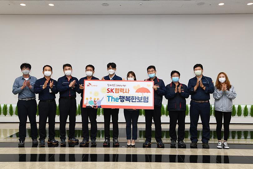 The행복한보험은 ‘SK협력사 공동근로복지기금’이 SK이노베이션의 25개 설비협력사 소속 전 구성원인 2,233명에게 제공하기로 한 단체 상해보험이다. SK이노베이션은 모든 구성원이 가장 안전하게 근무할 수 있도록 국내 최고 수준의 SHE 시스템을 갖춘데 이어, 상해/질병 등에 대한 불안감까지 해소해 구성원들이 안정적이고 편안하게 근무할 수 있도록 보다 촘촘한 ‘사회안전망(Safety Net)’을 구축한 것이다.
