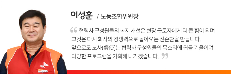 한편, ‘SK협력사 공동근로복지기금’은 SK이노베이션 노사(勞使)가 2019년도 단체협상에서 양극화 해소를 위한 협력사 공동근로복지기금 설립에 합의하고, 25개 협력사가 여기에 동참하면서 설립됐다. 이 기금은 울산CLX 구성원들이 기본급 1%를 기부하고 회사가 매칭그랜트 방식으로 출연한 상생기금에 협력사의 출연금 및 정부 지원금을 더한 총 15억 2천만 원 규모의 재원으로 설립∙운영되고 있다.