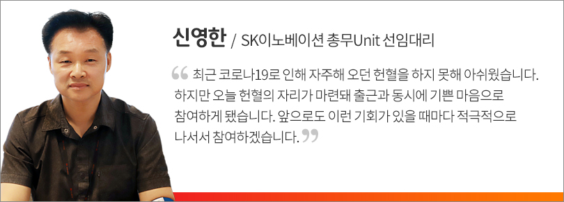 SK서린사옥에서 근무하고 있는 SK이노베이션 계열 및 SK주식회사, SK E&S 구성원들은 지난 7월 3일, 헌혈 독려 및 혈액 보유량 안정을 위해 진행된 ‘SK 릴레이 헌혈 캠페인’에 함께했다.