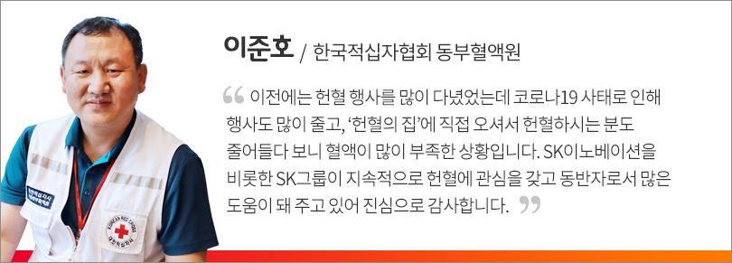 코로나19로 인한 혈액 부족난 해소에 기여하고자 ‘사회안전망(Safety Net)’ 차원에서 지난 5월 25일부터 시작된 ‘SK 릴레이 헌혈 캠페인’에 SK이노베이션 계열을 비롯한 SK그룹 관계사들이 동참했다.