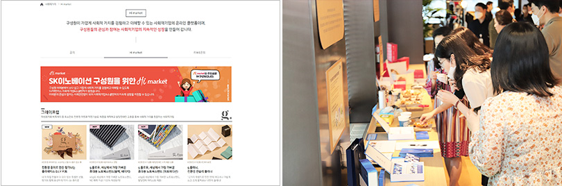 ▲ (좌)구성원 참여형 사회안전망(Safety Net) 전용 몰인 ‘하이 마켓(Hi market)’ / (우)SK서린빌딩에서 진행된 하이 마켓 쇼케이스