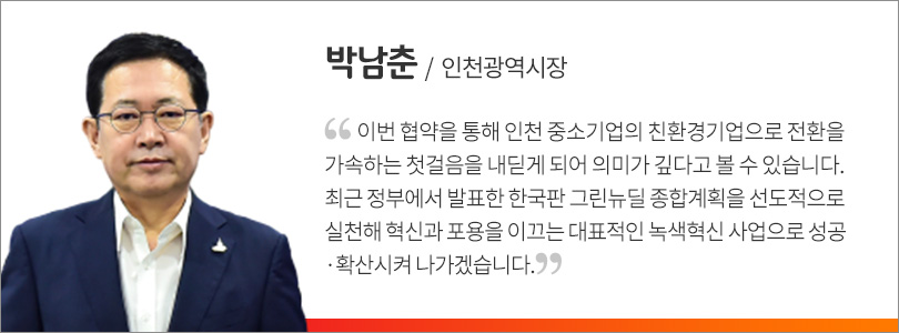 인천 지역의 환경 문제를 해결하고, 지역 맞춤형 녹색산업을 육성하기 위해 환경부, 인천광역시, 한국환경공단, SK인천석유화학이 뭉쳤다.