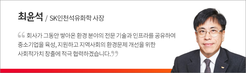 특히, SK인천석유화학은 회사가 보유한 환경 분야의 전문기술 인력과 인프라를 활용해 지역 중소기업의 기술 육성 및 개선 사업에 적극 협력하기로 했다. 먼저, 지역사회에 필요한 기술을 가진 전문기업을 발굴하고 혁신 설비와 기술들이 현장에 적용이 가능한지 테스트 베드(Test Bed)의 역할을 맡아 검증과 기술 보완을 지원할 예정이다. 또한 실제 설치 및 정상 운영에 필요한 컨설팅, 기술 육성을 통해 지역 내 환경문제 해결에 기여하는 등 사회적가치 창출에 동참하기로 했다.