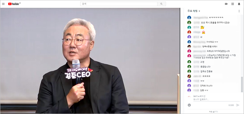 ▲ 유튜브를 활용해 ‘온라인 라이브’로 진행된 2020 상반기 SK이노베이션 계열 신입사원들의 ‘CEO와의 대화’