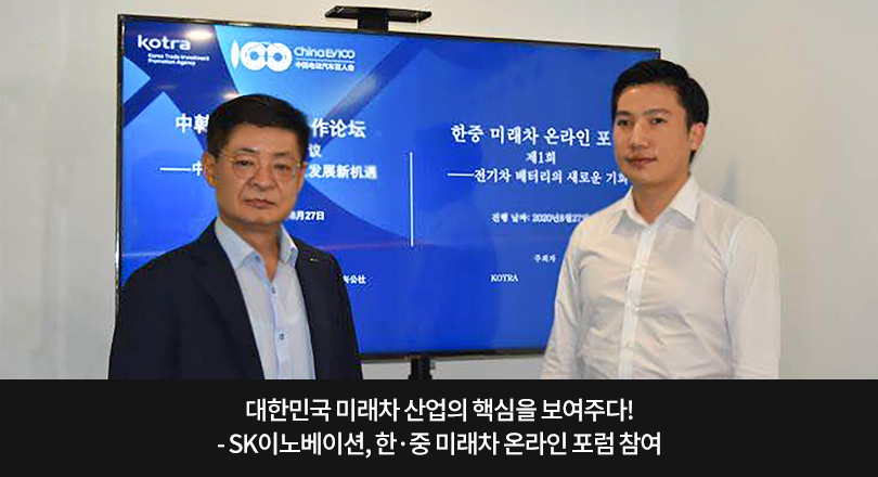 이러한 가운데 SK이노베이션이 지난 8월 27일, KOTRA와 중국 미래차 분야 전문협회인 ‘China EV100(이하 중국 전기차 백인회)’가 공동으로 개최한 ‘한·중 미래차 온라인 포럼(이하 포럼)’에 국내 배터리 기업 대표로 초청 받아 발표를 진행했다. 이번 포럼은 KOTRA와 중국 전기차 백인회가 내연기관 자동차에서 미래차 중심으로 빠르게 변화하는 자동차 시장 흐름에 발맞춰 한·중 양국 간 협력을 다지기 위해 함께 개최한 행사다.