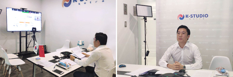 ▲ SK이노베이션이 북경 KOTRA Office에서 온라인을 통해 ‘한·중 미래차 온라인 포럼’ 중 발표를 진행하고 있다.