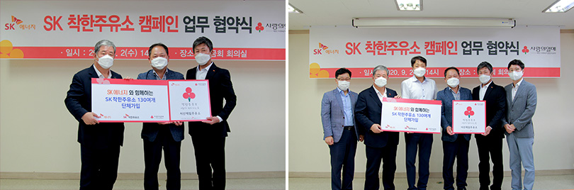 이날 협약을 시작으로 SK에너지 및 충청·호남·경남 지역의 자영주유소 약 140개소, 사회복지공동모금회가 캠페인에 참여하게 되며, 조성된 기부금은 지역 내 어려운 이웃들과 사회복지시설 지원 등에 쓰일 예정이다.