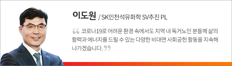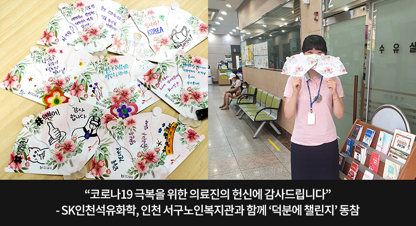 코로나19 극복을 위해 노력중인 의료진을 격려하는 차원에서 시작된 국민 참여형 캠페인 ‘덕분에 챌린지’에 SK인천석유화학이 함께했다. SK이노베이션의 자회사 SK인천석유화학은 코로나19에 맞서 헌신하고 있는 의료진을 응원하는 것은 물론, 사회적/생활 속 거리두기 장기화로 인해 활동이 어려운 지역 내 독거노인들의 비대면 관계망 증진 차원에서 ‘덕분에 챌린지 부채’ 만들기 프로그램을 추진했다.