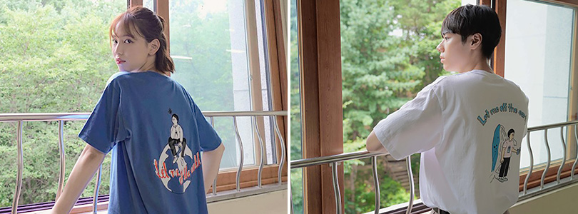 ▲ 플레이리스트의 웹드라마 ‘내리겠습니다 지구에서’ 드라마 주연배우들의 티셔츠 착용 샷 – 이미지 출처 : https://bit.ly/30Jd2s6