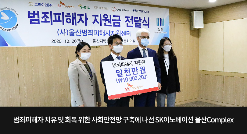 불의의 범죄 피해를 당해 삶의 의욕을 상실하고 고통과 절망감으로 어렵게 생활하는 피해자들. 이들이 그 피해를 치유 및 회복하고 조속히 사회로 복귀할 수 있는 지역사회 참여 분위기를 확산하고자, SK이노베이션의 주력 생산기지인 SK이노베이션 울산Complex(이하 울산CLX)가 범죄피해자를 지원하기 위한 ‘사회안전망(Safety Net)’ 구축에 나섰다.