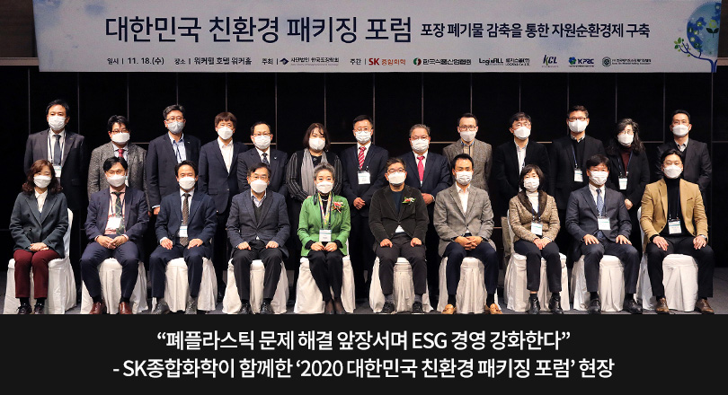 SK종합화학은 한국포장학회와 함께 11월 18일과 19일, 양일 간 서울 광진구에 위치한 워커힐 호텔의 워커홀과 아카디아에서 ‘2020 대한민국 친환경 패키징 포럼’을 개최했다.