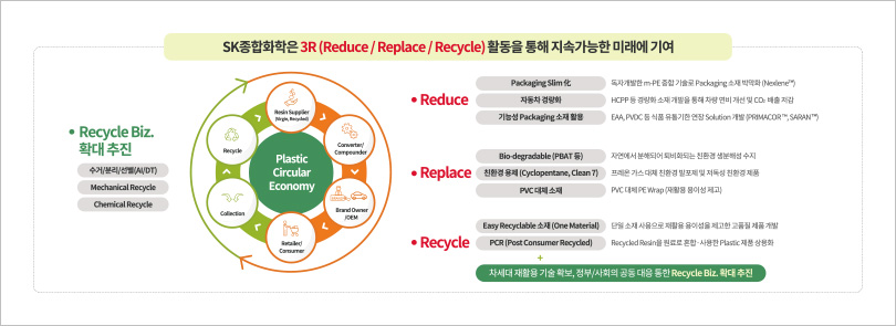 SK종합화학은 지난해 열린 ‘친환경 패키징 포럼’ 이후 1차 고객사 뿐 아니라 2, 3차 고객사들과 협력해 친환경 패키징 소재 연구개발에 속도를 높여왔다. 그 결과, 포장재 필름 두께와 무게를 줄여 플라스틱 사용량을 줄일 수 있는 ‘다운게이징’(Down Gauging) 소재를 개발하고, 기존 PVC 대신 재활용이 용이한 친환경 PE 소재를 개발하는 등의 성과를 이뤄낼 수 있었다. SK종합화학은 자원 순환경제 구축을 위해 더욱 많은 기업/기관들과 친환경 패키징 개발을 위한 협업을 이어갈 예정이다.
