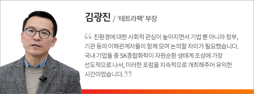 이번 포럼은 지난해 SK종합화학이 주최한 ‘플라스틱 패키징 소재 친환경 포럼’에서 진일보했다. 특히 올해는 코로나19로 인한 택배 수요 증가에 따라 폐플라스틱 문제 해결 필요성이 대두되자, 이에 공감한 정부기관, 학계, 기업들의 참여가 크게 늘며 범 국가적인 포럼으로 확대되었다.