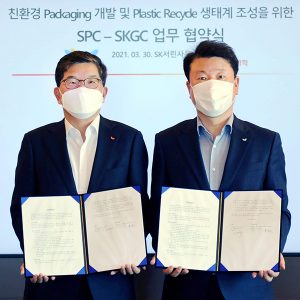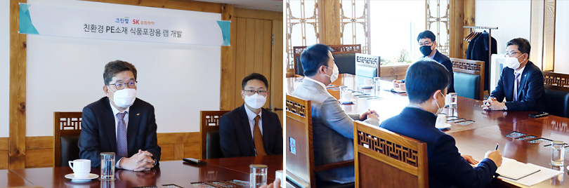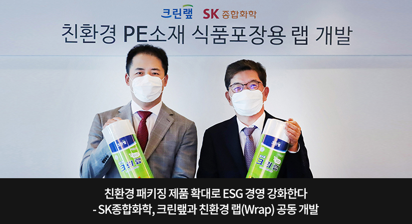 SK종합화학과 크린랲은 11월 26일, 서울 종로구 SK서린사옥에서 공동 개발한 ‘업소용 친환경 PE 랩’을 선보이며, 친환경 패키징 제품 공동 개발을 확대해 ESG(*) 경영을 강화하는데 협력하기로 했다. 이 자리에는 SK종합화학 나경수 사장과 크린랲 승문수 대표 등 관계자들이 참석했다.