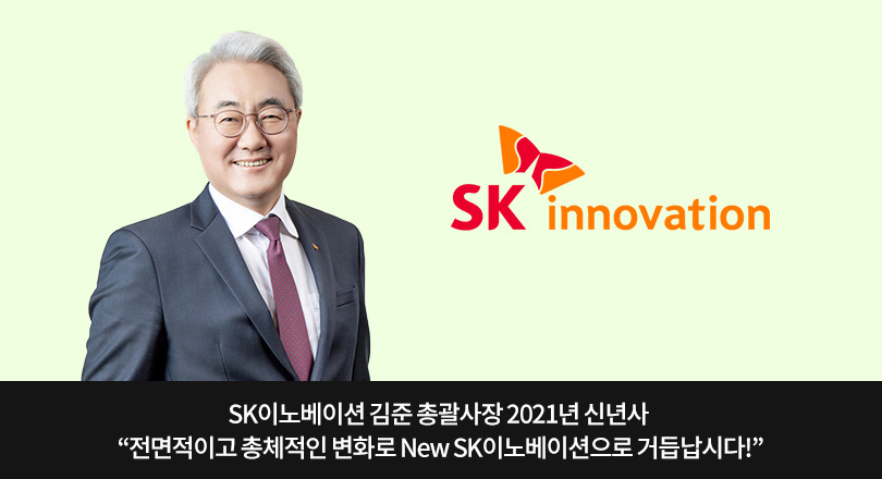 SK이노베이션 김준 총괄사장은 1월 4일, SK이노베이션 구성원들에게 전하는 신년사에서 “지속가능한 성장에 더 이상 지체할 시간이 없는 만큼, 전면적이고 총체적인 변화로 ‘New SK이노베이션’을 만들 것”이라며, “어렵고 힘든 변화의 여정에 앞장서겠다”고 말했다.