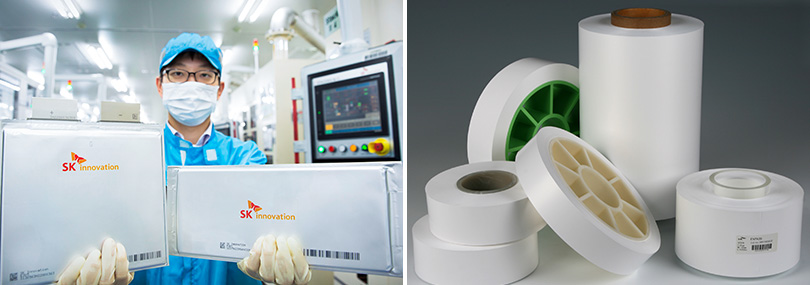 ▲ (좌) SK이노베이션의 전기차 배터리, (우) SK아이이테크놀로지의 LiBS