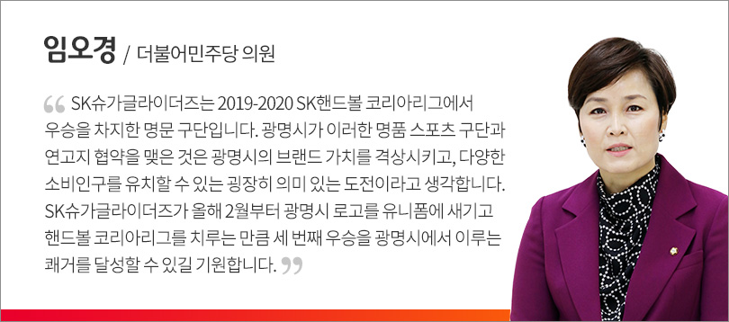 2020-2021 SK핸드볼코리아리그에서 최근 연승 행진을 펼치고 있는 SK슈가글라이더즈! SK루브리컨츠 소속 여자 핸드볼팀인 ‘SK슈가글라이더즈’가 핸드볼 저변 확대 및 지역 스포츠 문화 발전을 위해 광명시를 연고지로 확정했다.