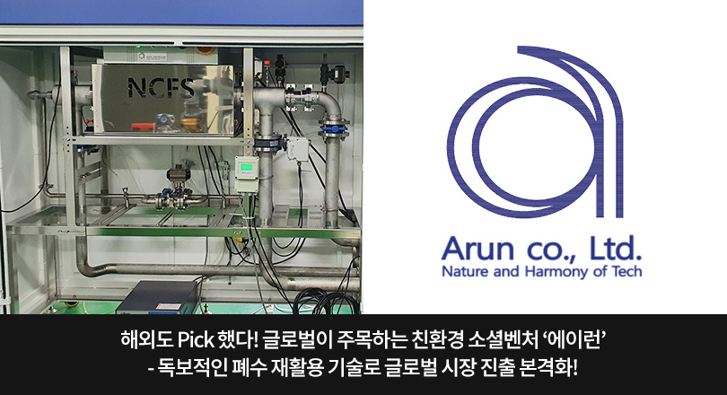 SK이노베이션이 지원하는 친환경 소셜벤처 ‘에이런(Arun)’이 높은 폐수 재처리 기술력으로 해외에서 주목받고 있다. 에이런은 정유, 석유화학, 반도체, 철강 등 공업용수가 많이 사용되는 분야에서 필수적인 폐수 여과 기술의 문제점을 해결하기 위해 폐수를 재처리하는 획기적인 기술을 개발했다.