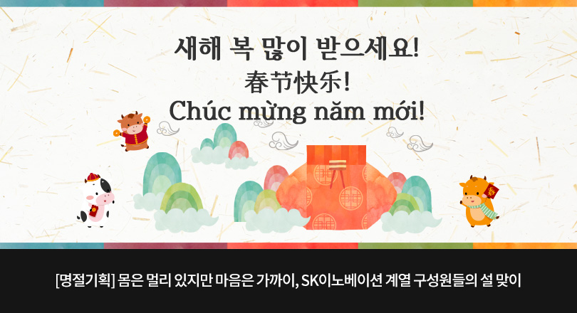 아쉬운 마음을 뒤로한 채 중국, 베트남 등 SK이노베이션 계열 구성원들이 근무하고 있는 각국의 새해 명절 문화에 대해 알아보고, 현지에서 일하고 있는 구성원들과 함께 얘기하는 시간을 마련했다. 비록 물리적인 거리는 멀리 떨어져 있지만, 마음은 늘 가까이에 있는 이들의 얘기를 만나보자.