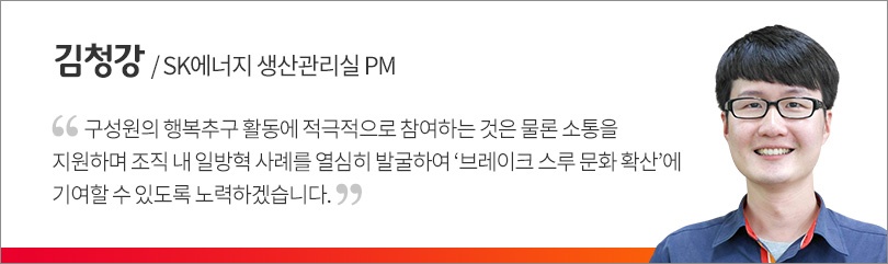 한편, 지난 2월 초 구성원들을 대상으로 2021년 행복 과제를 선정하기 위해 Change, Culture 부문 등으로 나눠 설문조사를 실시했다. 그 결과 Change 부문에서는 수평적 협력관계 구축이, Culture 부문에서는 휴가/휴직 제도 개선 등이 선정됐다. 향후 2021년 iCON은 SK이노베이션 계열 구성원들이 선정한 행복 과제에 대한 해결책을 만들어 나갈 예정이다.