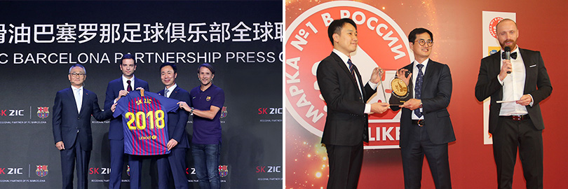 한편, SK ZIC는 국내 뿐만 아니라 글로벌 시장에서도 No.1 브랜드로 인정받고 있다. SK ZIC는 2018년 세계적인 명문 축구단인 ‘FC 바르셀로나’와 스폰서십을 체결하며 글로벌 브랜드 인지도를 증대시키고 있으며, 러시아 ‘국민 브랜드(Narodnaya Marka)’로 2회 연속 선정된 바 있다.