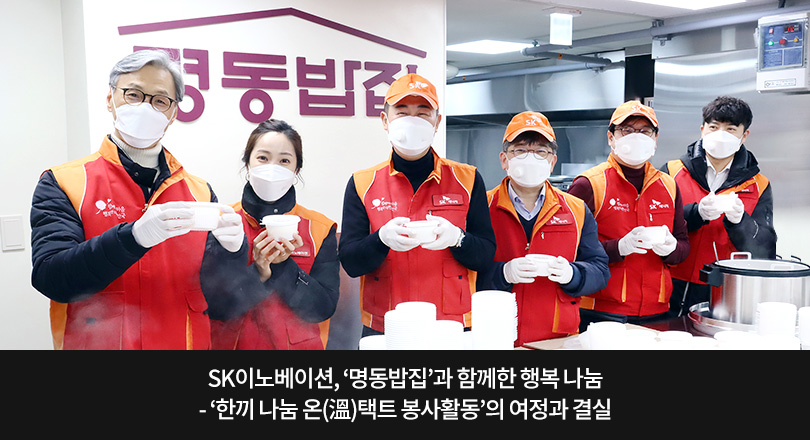 ‘한끼 나눔 온택트 프로젝트’의 일환으로 SK이노베이션 계열 구성원들이 함께한 ‘명동밥집’ 봉사활동은 올해 1월 6일을 시작으로 3월 31일까지 진행됐다. 매주 2회, 총 115 명의 구성원들이 참여했으며, 이들은 한파가 지속된 매서운 날씨에도 1천여 명의 노숙인을 위해 준비한 도시락을 포장 및 전달하며 따뜻한 마음을 전했다.