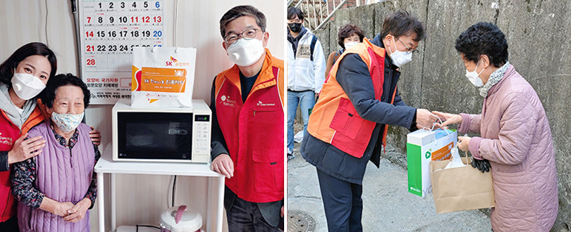 이를 통해 SK종합화학 나경수 사장, SK루브리컨츠 차규탁 사장 등 CEO부터 신입사원까지 170여 명의 구성원들이 봉사활동에 참여했으며, 각 사는 따뜻한 한끼 식사를 비롯해 어르신들이 간식으로 드실 수 있는 다과 세트와 개인 방역을 위한 마스크 1만 1천 장 등을 기부했다.