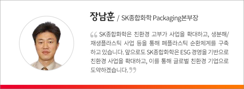 최근 SK종합화학은 플라스틱 순환체계 구축을 목표로 친환경 사업 확장에 집중하고 있으며, 전 세계가 당면한 폐플라스틱 문제 해결 및 폐자원 선순환 체계 활성화에 앞장서고 있다. 특히 폐플라스틱을 재활용해 새로운 친환경 플라스틱 제품을 만들고, 재활용이 용이한 친환경/고부가 제품을 개발하며, 고기능성 제품을 생산해 플라스틱 사용량을 줄이는 등 다양한 노력을 기울이고 있다.