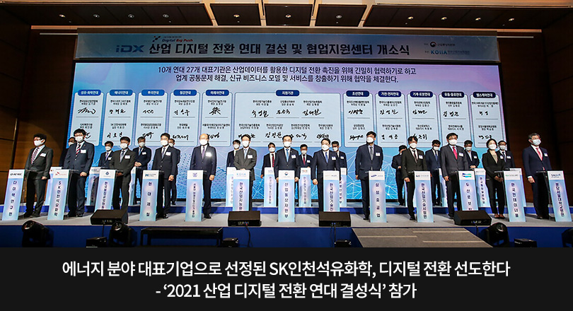 SK이노베이션의 자회사인 SK인천석유화학이 지난 6월 24일, 에너지 분야 대표기업으로 선정돼 한국산업지능화협회(KOIIA)가 주최한 ‘2021 산업 디지털 전환 연대 결성식’에 참가했다.