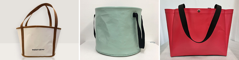 ▲ SK이노베이션이 육성하는 친환경 사회적기업 ‘몽세누(좌), 라잇루트(중앙), ‘우시산(우)’이 사일리지 업사이클링 원단으로 제작한 제품