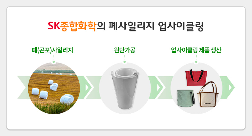이와 같은 문제를 해결하기 위해 SK종합화학의 협력사인 ‘동민산업’에서는 논/밭에 버려지는 폐사일리지의 약 50%를 수거하고 있으며, SK종합화학은 그 중 일부를 업사이클링해 새로운 제품으로 재탄생시키고 있다.