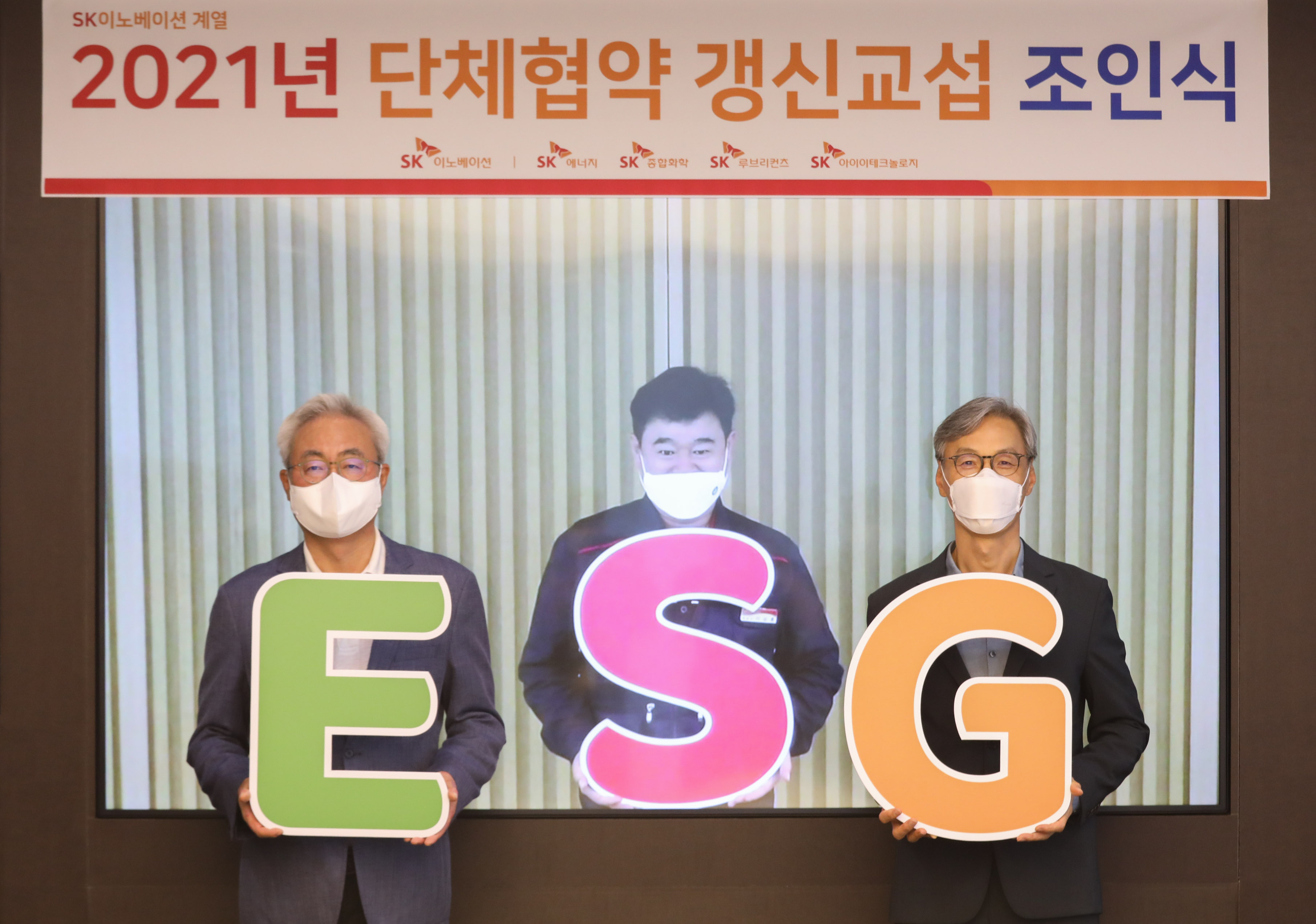 ■ 22일, 서린동 SK빌딩과 울산CLX를 화상으로 연결해 2021년도 단체협약 조인식 가져