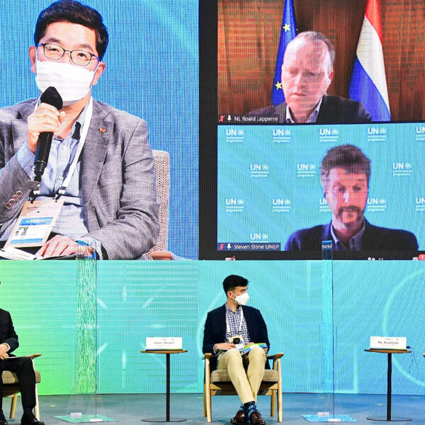 ▲ SK종합화학 나경수 사장(사진 왼쪽 상단 첫번째, 우측 하단 첫번째)이 지난 5월 31일 서울 녹색미래 정상회의 ‘순환경제 세션’에 참석해 패널 토론을 진행하고 있다.