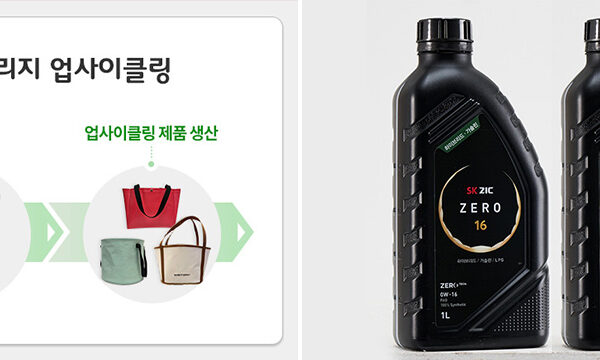 또한, SK종합화학은 동민산업과 협력해 버려진 농업용 ‘곤포 사일리지(Silage)’를 업사이클 원단으로 만들고, 이를 올 7월부터 SK종합화학의 고성능 폴리에틸렌 소재인 ‘넥슬렌**’을 담는 친환경 포대 제작과 다양한 업사이클링 제품 생산에 활용하고 있다. 이 외에도 SK이노베이션의 윤활유 사업 자회사인 SK루브리컨츠의 SK지크(SK ZIC)용기에 재생 플라스틱인 PCR***을 적용해 친환경 용기로 탈바꿈하기도 했다.