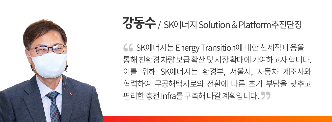 이번 MOU 체결로 환경부와 서울특별시는 구매보조금 지급, 충전 인프라 확충 등 무공해택시의 보급 확대를 추진한다. SK에너지는 정부 및 지자체, 택시업계 등과 적극적으로 협력해 차고지, 차량 교대지, 기사식당, 택시협회 지역사무실 등 택시운전자들이 자주 찾는 곳에 충전기를 설치하여 충전 여건을 개선하는 것은 물론, 안정적인 충전 서비스를 제공할 계획이다.