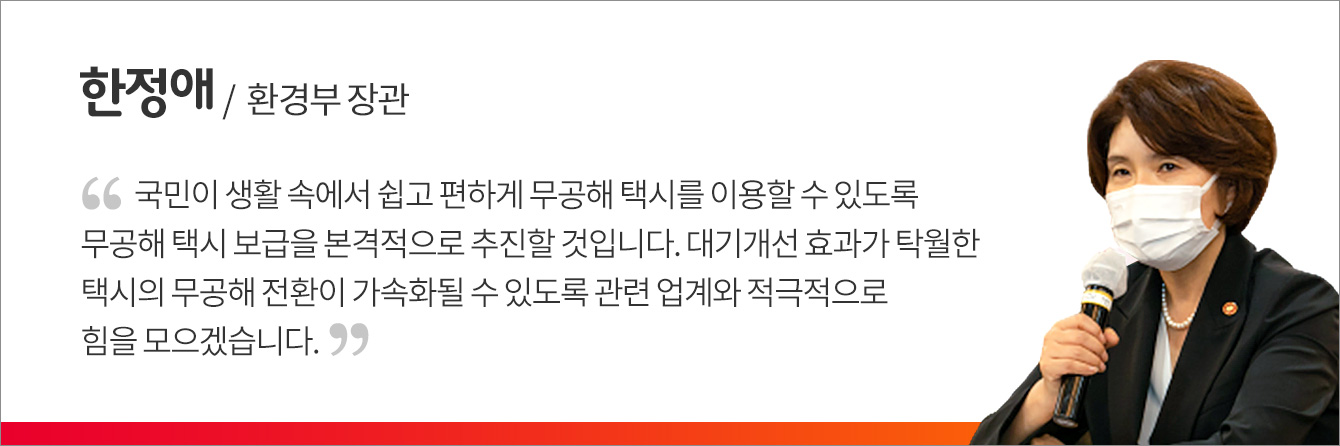 택시는 일반 승용차에 비해 주행거리가 10배 정도 길고 온실가스도 4.5배 수준으로 배출하기 때문에 무공해 차량으로 전환될 경우, 대기 개선 효과가 매우 클 것으로 예상된다. 아울러 핵심 대중교통수단 중 하나인 택시가 전기차나 수소차로 전환될 경우 무공해차의 정착에도 큰 도움이 될 것으로 기대된다.